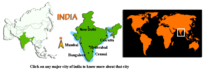 India is the seventh largest & second most populous nations of the world .It lies entirely in the northern hemisphere .The country covers 32,87,263 square k.ms. India has a land frontier of 15,200 k.ms. & a coastline of 7,516.6k.ms. including the mainland's coastline as well as that of the Indian islands .